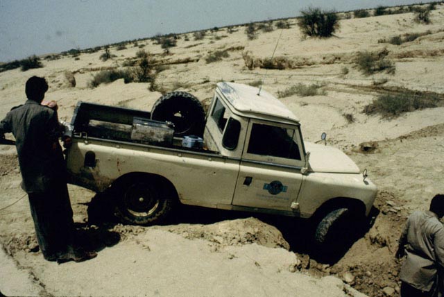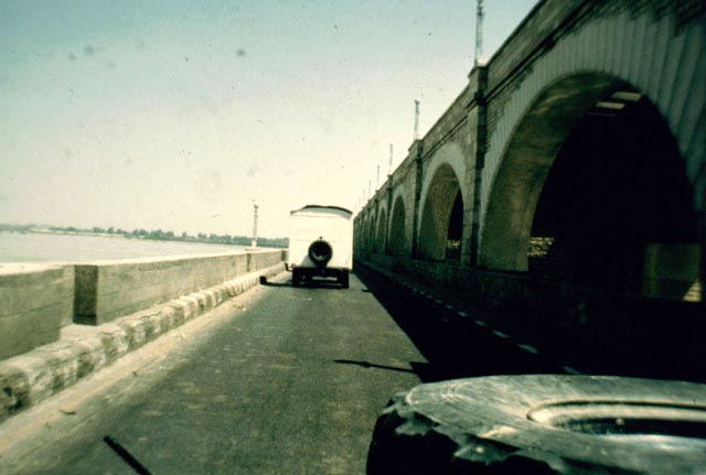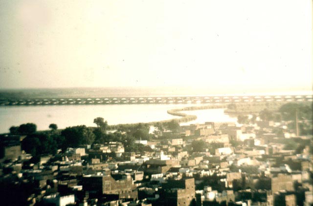 The camp move from the Punjab (Shell) to Baluchistan (BP) took 4 days and we all drove something or other. Our route took us across the Sukkur barrage, built by the British, and we then spent the night in Sukkur. I have been to Sukkur recently and a new bridge has been built just to the south of the barrage. The picture on the left was taken from the top of a minaret, attached to a mosque. The door-keeper really didn't want to let us go up but eventually agreed as long as we didn't take any photographs! We also wandered around the town and picked up quite a following.